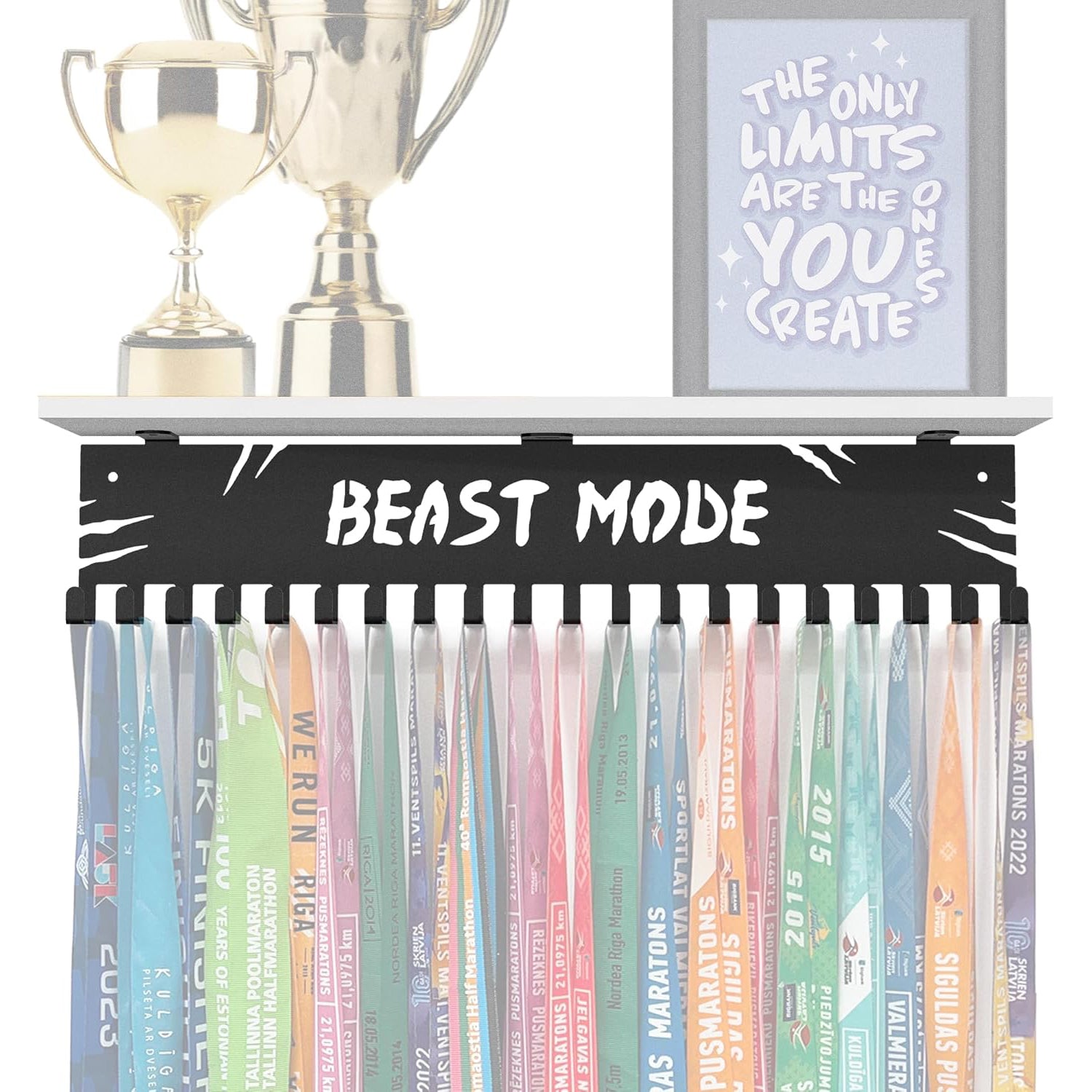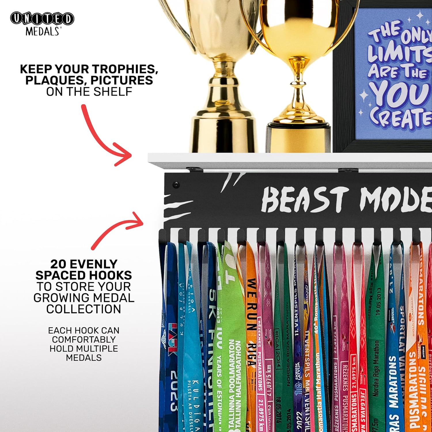 Medal hanger with hooks - Beast Mode - Black - 16.9" / 43cm - Bamboo shelf (White)